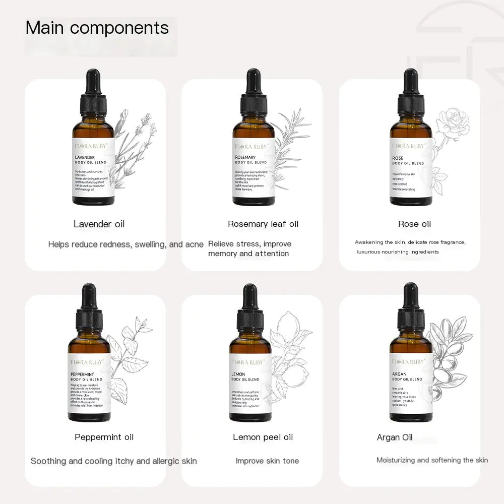 Crafted with a unique combination of rose, rosemary, lemon, nuts, lavender, and mint, our essential oil not only helps to shrink pores but also hydrates, moisturizes, and brightens your skin tone. This multi-functional oil is perfect for those looking to tighten and soothe their skin while enjoying a relaxing massage.