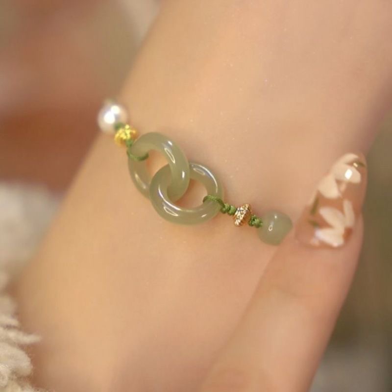 Elevate your style with our exquisite Link Jade Peace Buckle Bracelet, designed for the modern woman who appreciates fashion and beauty. This stunning piece features a unique braided pearl design that effortlessly combines elegance with a fresh and sweet aesthetic.