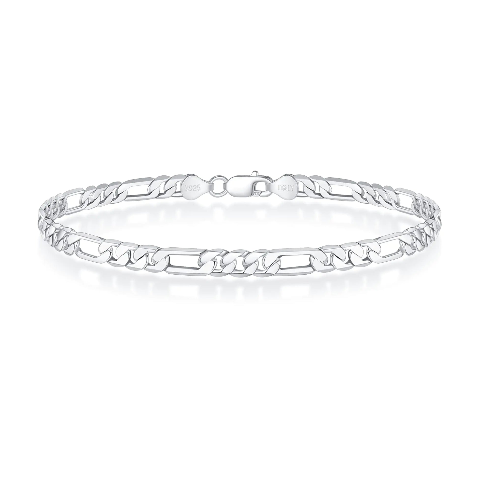 [STERLING SILVER CLASP CHIAN FOR MEN BRACELET - Solid 925 sterling silver clasp 4mm silver Figaro chain bracelet Italian craftsmanship gives this classic mens chain bracelet the most fashionable feel this classic style silver mens bracelet is a perfect jewelry for men to get a fashion look. This silver mens bracelet can wear simply or layering with other bracelet or wrist jewelry will also get a popular trends. Perfect Figaro chain bracelet for men jewelry collection. CLASSIC SILVER BRACELET FOR MEN - As a high-end jewelry material silver has existed for thousands of years. From ancient times to the present silver jewelry has had a wide and far-reaching influence and wearing silver jewelry for a long time also has certain benefits in relieving anxiety. Sterling silver clasp is lead free and nickel-free making this suit for any sensitive skin. A perfect material to make a beautiful chain bracelet and jewelry for men. "GIFTS FOR MEN JEWELRY - A precious metal that can be used for a variety of purposes giving anyone who wears it a sparkle in a crowd and an eye-catching lustre. You cant go wrong with silver jewelry. This classic silver bracelet is the perfect gifts for men husband son men dad brother.... Give them a new fashion style different from other jewelry." UNIQUE MENS SILVER BRACELET JEWELRY- Diamond cut crafts classic Figaro chain bracelet for men wear high polishing crafts makes the silver bracelet smooth and brighter than others. A perfect jewelry for men wear or as a gift. AFTER SALE SERVICE - If there are any problems with the Figaro chain bracelet please feel free to contact us.Questions or concerns regarding the order will be answered within 24 hours.]